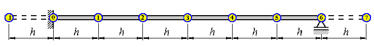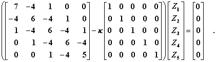 Im Skript “Biegeschwingungen gerader Träger” wird gezeigt, wie für die sehr grobe Einteilung des Trägers in nA = 6 Abschnitte das folgende spezielle symmetrische Eigenwertproblem entsteht:
