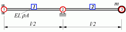 Gegeben: EI = 3000 Nm2 ; ρA = 3 kg/m ; m = 2 kg ; l = 1 m .