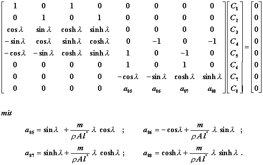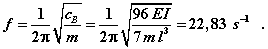 Skript “Biegeschwingungen gerader Träger” wird gezeigt, dass die Berechnung des einfachen Systems “Masseloser Träger mit Einzelmasse am Ende” folgende Eigenfrequenz liefert: