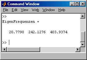 dies (es wurde jeweils nur eine Eigenfrequenz berechnet, weil das System mit dem masselosen Träger nur einen Freiheitsgrad hat):