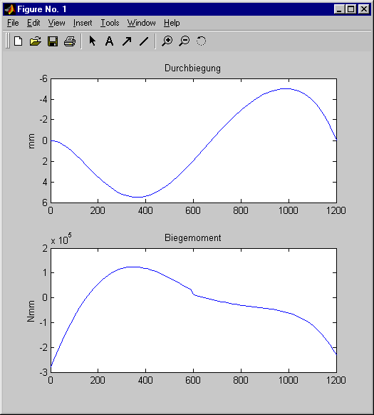 subplot(212) plot(zS , Mb) , title('Biegemoment') ylabel('Nmm') ;
