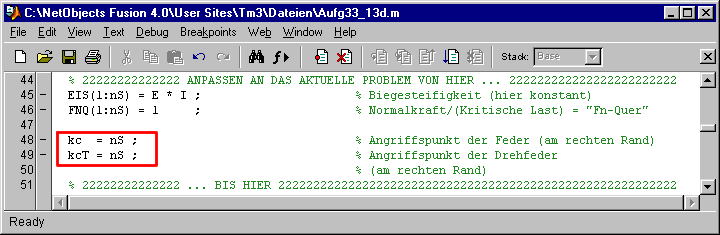 % kcT = round (n*tl1/tl + 1.1) ; % Angriffspunkt einer Drehfeder im Abstand tl1