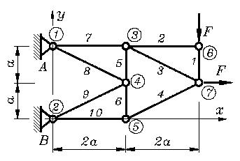 a = 0,5 m, F = 10 kN, EA = 6,3 * 107 N
