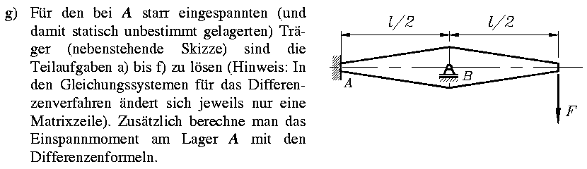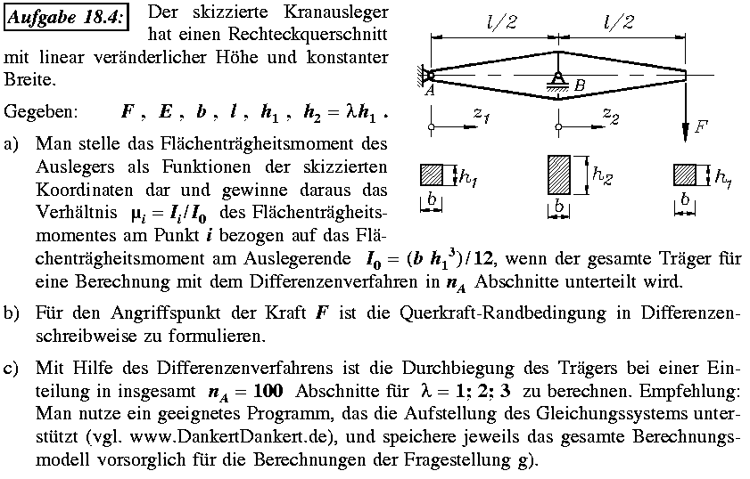 Liebe Studenten, dies ist Teil einer Aufgabe, die Sie zu Ihrer Übung lösen sollen, deshalb wird hier nicht die Lösung demonstriert. Als Programm, mit dem Sie z. B. das lineare Gleichungssystem lösen können, kann Ihnen u. a. MATLAB empfohlen werden. Ein Beispiel für die Lösung eines großen linearen Gleichungssystems mit MATLAB finden Sie hier . |