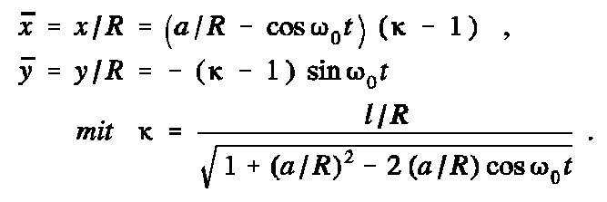 Die Bahnkurve (Fragestellung a) kann in dimensionsloser Form folgendermaßen beschrieben werden (vgl. Anhang A):