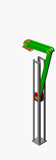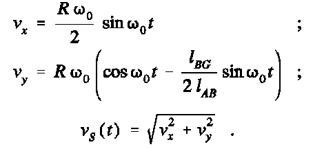 Die nebenstehende Animation zeigt die exzentrische Schubkurbel mit den Abmessungsverhältnissen, die auf Seite 483 angegeben sind. Eine AVI-Datei (343 kB) dieser Bewegungssimulation ist zum Download verfügbar. Die Ermittlung der Geschwindigkeits-Zeit-Gesetze für den (roten) Gleitstein in der Vertikalführung und des Mittelpunktes der Verbindungsstange von Kurbel und Gleitstein wird ausführlich auf den Seiten 481 und 482 beschrieben, Ergebnisse: