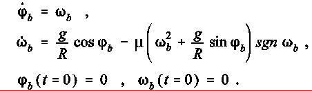 Unter Verwendung der Parameter R = 1 m , μ = 0,05 , g = 9,81 m/s2 soll für den Zeitbereich 0 ≤ t ≤ 10 s folgendes Anfangswertproblem gelöst werden: |