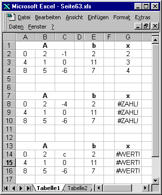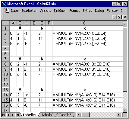 in der Spalte G erledigt, die im nebenstehenden Bild zu sehen sind, für Gleichungssystem a) z. B. in den Zellen G2 bis G4. Die Formel