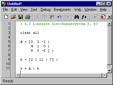 ... lässt sich mit MATLAB (natürlich!!) nicht lösen. Die Koeffizientenmatrix A ist singulär :