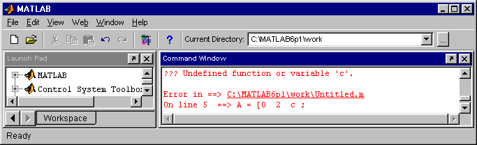 ... muss MATLAB passen. Das ausgesprochen leistungsfähige Programm ist nicht für die symbolische Rechnung ausgelegt und kann deshalb eine Variable nur akzeptieren, wenn dieser vorher ein numerischer Wert zugewiesen wurde. Es äußert sich eindeutig: