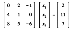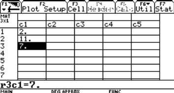 Der Eingabevorgang für die Matrix A wird in gleicher Weise für den “Vektor der rechten Seite” b wiederholt, es ist eine “3 Zeilen”-”Eine Spalte”-Matrix: Type: Matrix Die nebenstehende Abbildung zeigt die Eingabe des Vektors, die wieder mit “Raute” und “Q” abgeschlossen wird. |