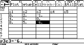 ... erscheint die Eingabemaske für das Eingeben der 3*3-Matrix. Mit den Cursortasten kann man von Position zu Position “wandern”. Nach Eingabe aller Werte ... |