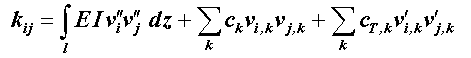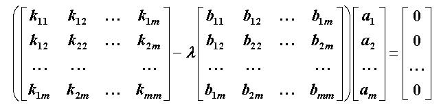 der Faktor -λ herausgezogen. Die Lösung des Matrizen-Eigenwertproblems liefert die λ-Werte, für die das homogene Gleichungssystem nichttriviale Lösungen hat. Der kleinste λ -Wert beschreibt dann den kritischen Zustand (Stab knickt). Für den mit Abstand häufigsten Fall einer konstanten Normalkraft infolge einer äußeren Kraft F entsprechend