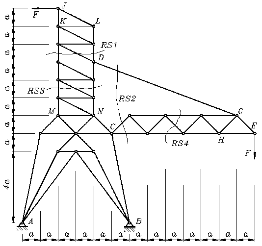 Natürlich stehen für Fachwerke dieser Art Programme zur Verfügung, die die Berechnung der Stabkräfte durch formale Beschreibung des Modells ermöglichen, wie auf Seite 77 beschrieben wird. Besonders zu